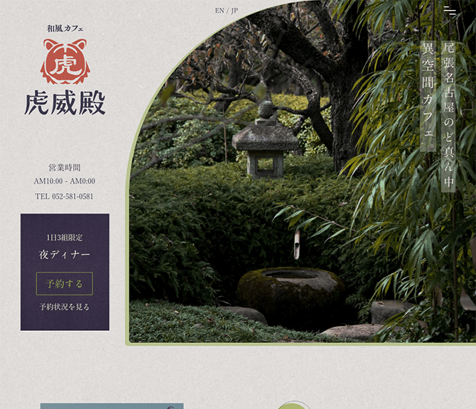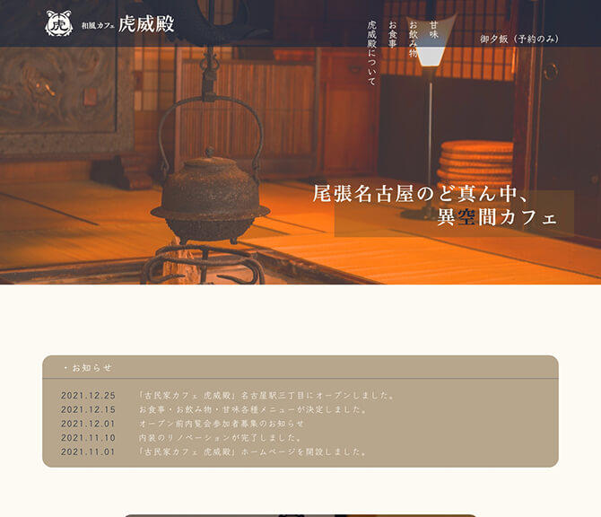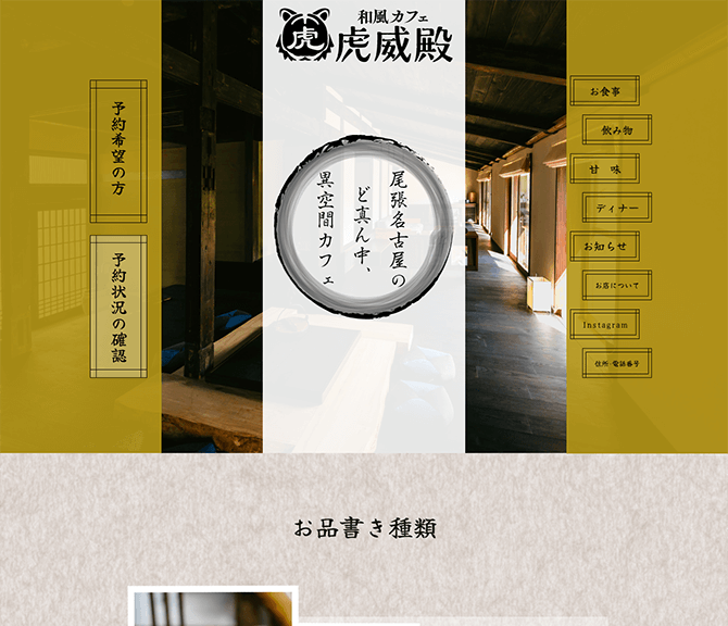 Webデザイン[和風(和風カフェ 虎威殿)]